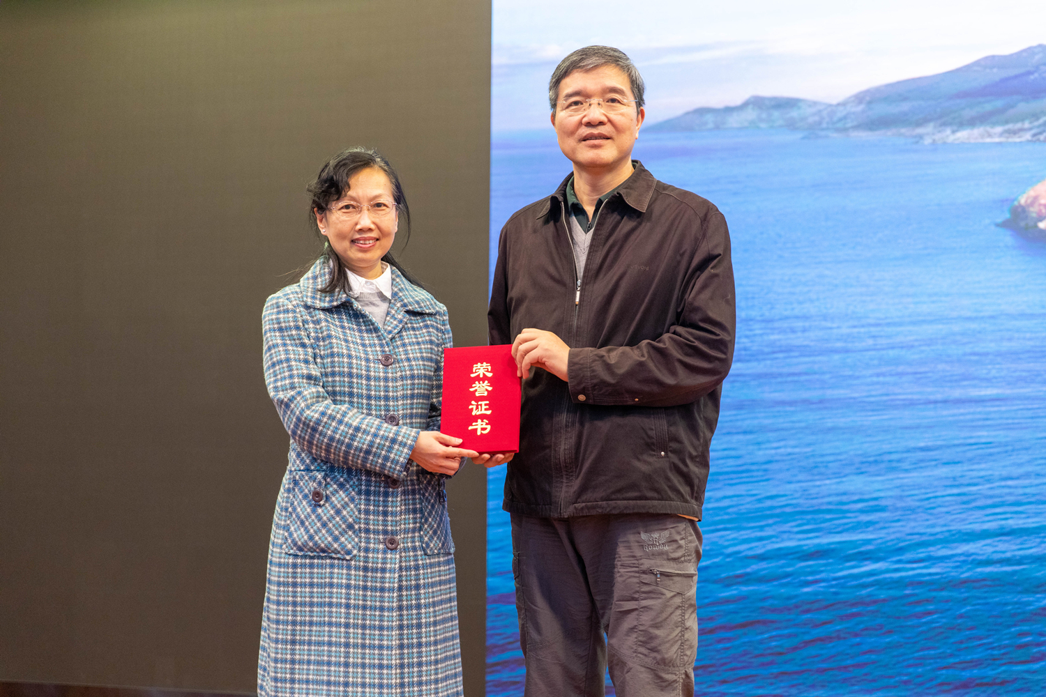報(bào)告結(jié)束后,陳誼和譚勵(lì)在熱烈的掌聲中代表學(xué)院為唐衛(wèi)清和吳國(guó)斌頒發(fā)了榮譽(yù)證書。