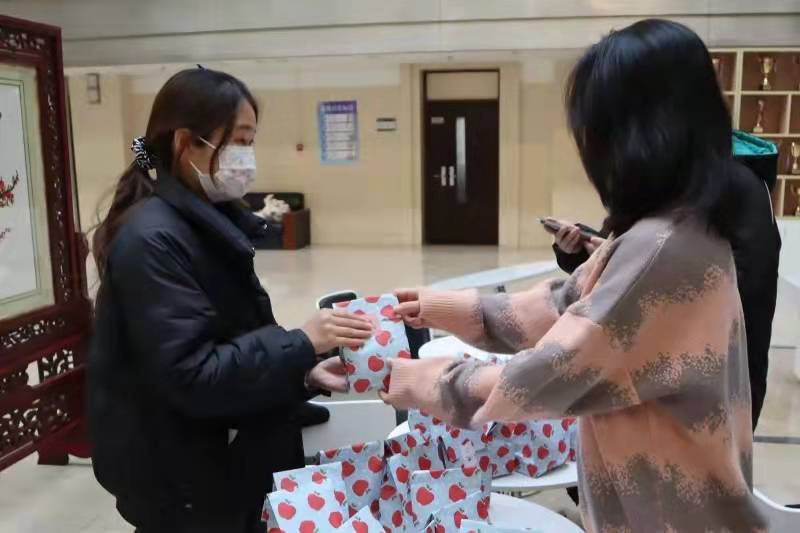 在考研學子們仍在抓緊最后的時光緊張復習之際,商學院心資部的同學們早早來到商樓大廳為家庭經濟困難的考研學子們精心準備小禮袋。畫滿紅蘋果的藍白相間小禮袋里裝著又大又紅的蘋果和一張滿載著祝福語的卡片。蘋果有著放“蘋”心態、“蘋”穩上岸、一定能“果”線的寓意,寄托著學弟學妹們對考研學子的祝福;卡片上寫有大家精心準備的鼓勵話語,言語間希望這些考研的學長學姐們能摘取勝利的桂冠,不負過去伏案桌前、泛舟書海的自己。