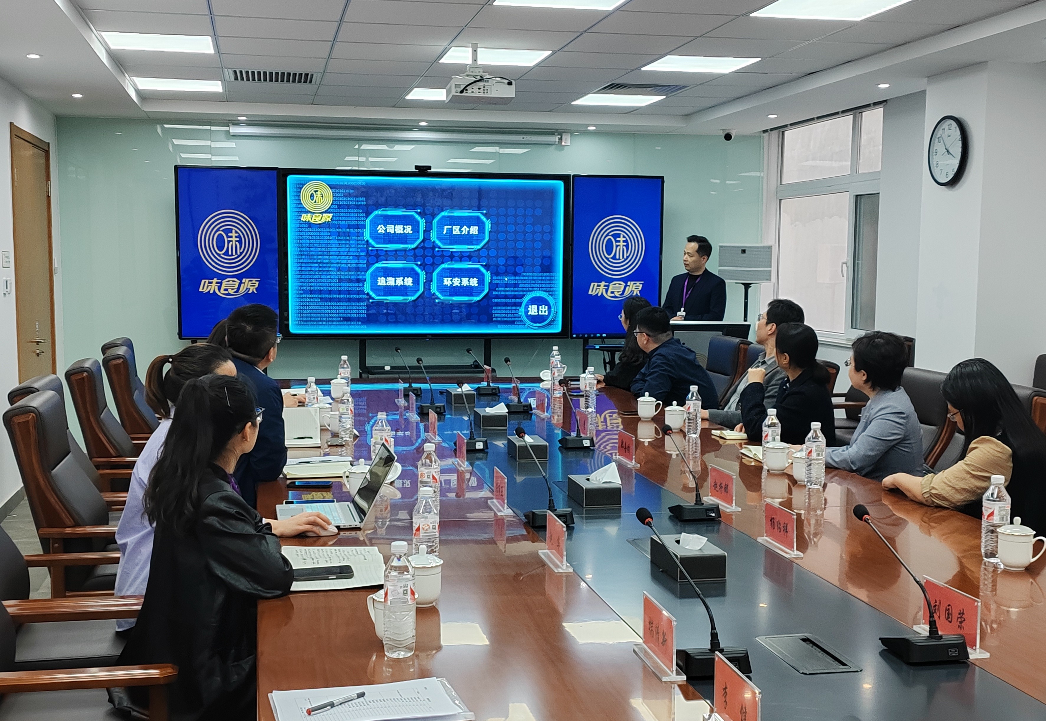 調研團隊最后來到校友企業——味食源科技有限公司,與公司代表徐德成、副總經理張麗亞、董事長助理嚴江、綜合管理部經理陳曉嬌及校友綦艷梅、趙華等人進行深入交流。雙方圍繞企業對應屆畢業生的招聘需求、畢業生在企業的發展路徑及實習機會等話題進行了深入探討,并就調整該公司捐贈我校的獎學金用途、鼓勵學生參加科創活動的可行性進行了分析和溝通。
