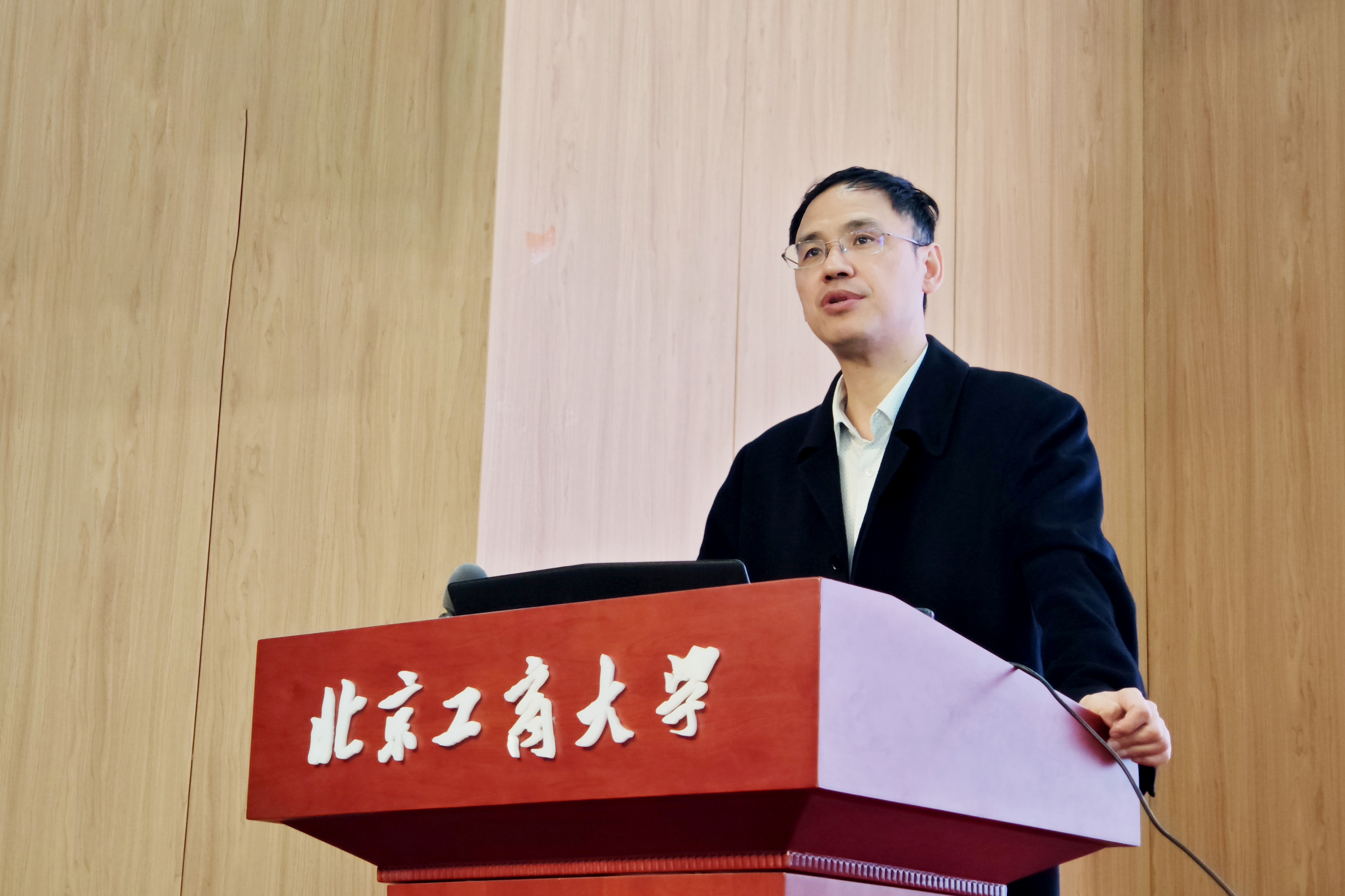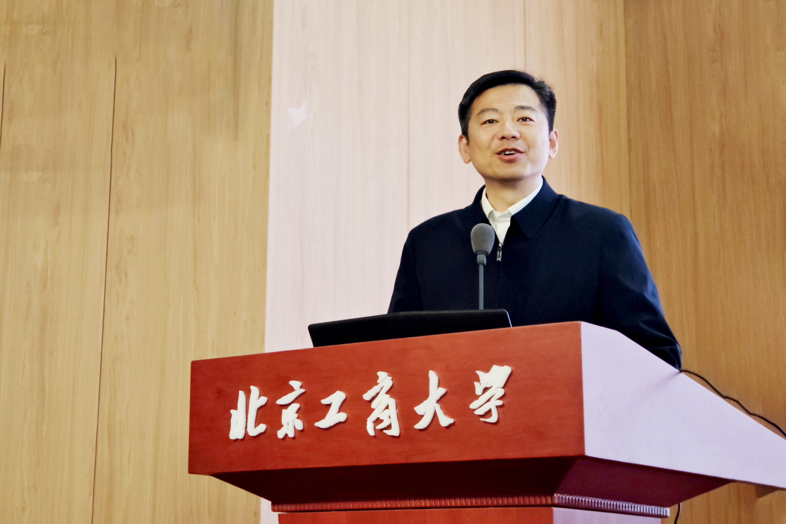 郭毅教授主持校外導師聘任儀式并講話。他向長期支持經濟學科建設、扎根育人育才一線的校內外表示衷心的感謝,并期待學生在學校配備的校內外資源的支持下,從產業、行業、實際崗位獲得新要求,使校園培養更加契合社會要求,成為合格有為的金融人才,為北京乃至全國經濟社會的高質量發展做出北工商貢獻。