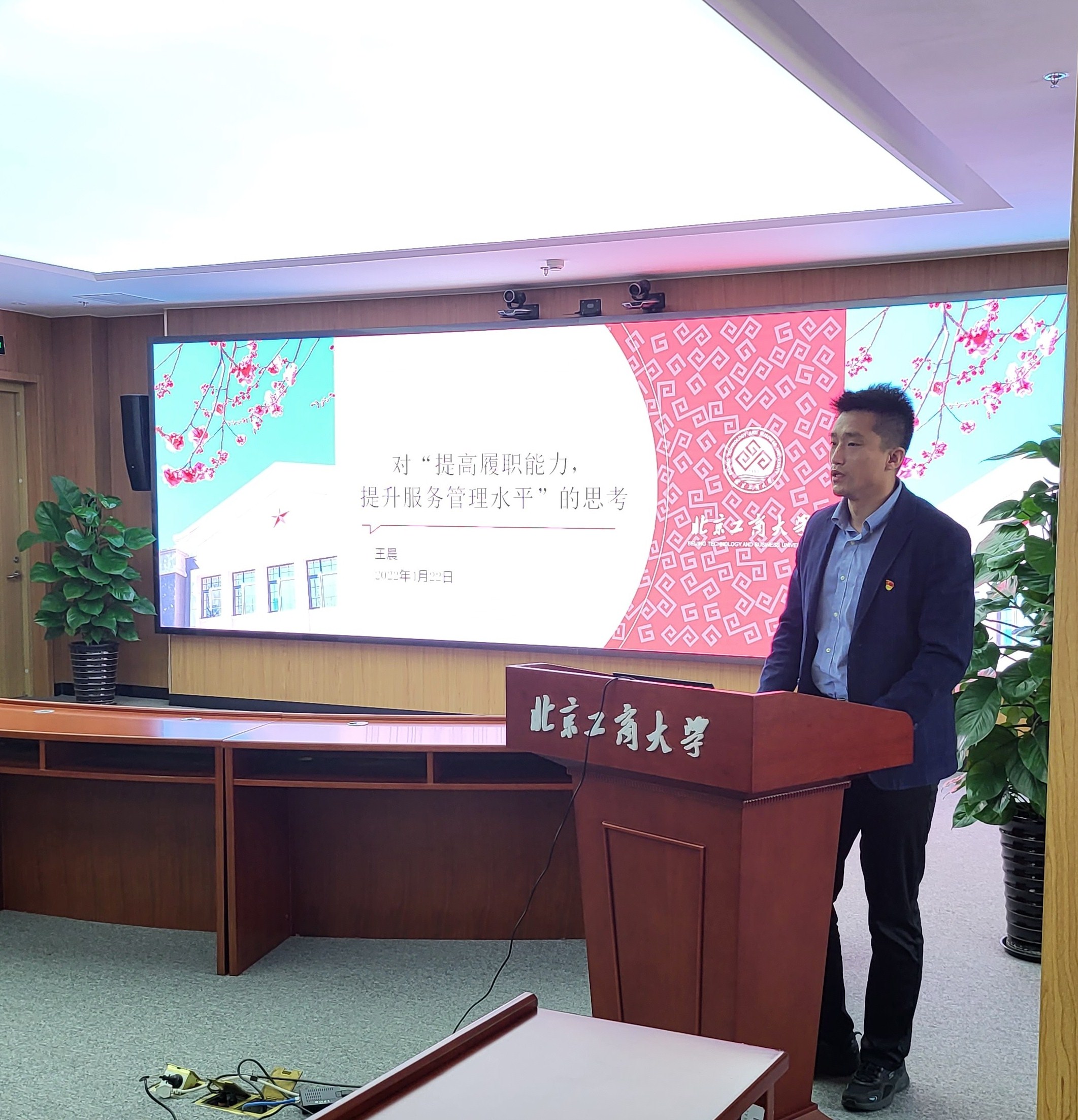 學生處薛瓅回顧了參加首屆北京高校系統管理崗位青年教職工職業能力競賽的籌備過程和比賽過程,提煉出高校青年教職工在統籌協調能力、文字與媒介表達能力、團隊配合能力和創新能力等四方面的重點要求,指出機關管理人員要在大局意識、追求卓越、學無止境方面不斷進步。科學研究院王沈南從3月開展的“機關管理人員能力提升專題網絡培訓班”中選取了5門課程與大家進行交流。他結合學報編輯、教學科研和管理能力三個方面,旁征博引,侃侃而談,對做好高校意識形態工作提出獨到的見解和有益的提醒。發展規劃處韓笑分享了網絡培訓的收獲,并著重介紹了學校建設“多科性具有商科、輕工和食品特色的高水平研究型大學”的辦學定位、“理工+經管”的工商發展新模式、建設四個“高精尖創新中心”的重大舉措以及綜合改革等重要內容,號召機關黨員“浩蕩東風起,奮斗新征程”。紀檢監察綜合室王晨從“踐行黨的偉大精神,切實增強政治‘三力’;強化作風建設,全面提升服務師生效能;提升履職能力,成為業務工作的行家里手”三個方面提出了個人思考,闡釋了機關管理人員應具備的“精、清、請”三個能力,即精通政策的能力、摸清情況的能力、做好請示的能力。團委王若冰回顧了參加冬奧會和冬殘奧會服務保障的難忘經歷,深情講述了我校志愿者團隊無怨無悔、服務奉獻的動人故事,提煉出堅持“精心、細心、貼心、暖心、安心、放心”的奧運服務保障模式。她談到,“胸懷大局,自信開放、迎難而上、追求卓越、共創未來”的北京冬奧精神,定會引領廣大青年通知踔厲奮發、篤行不怠,以更加堅定的自信、更加堅決的勇氣,砥礪再出發,一起向未來。
