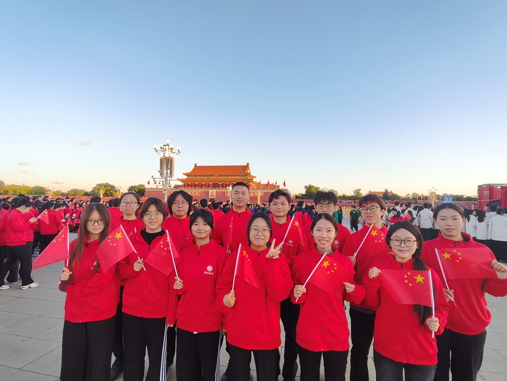 今年是中華人民共和國成立75周年,10月1日凌晨,我校188名師生代表來到天安門廣場,觀禮升國旗儀式,21名師生組成志愿者團隊,承擔活動現場的志愿服務和引導工作,開展沉浸式愛國主義教育活動,共同祝愿祖國繁榮昌盛、國泰民安。