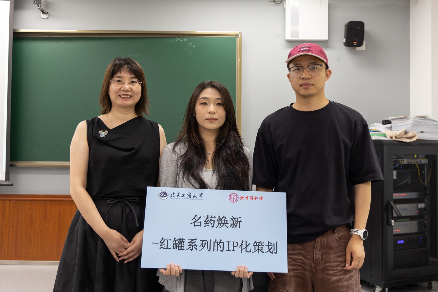 由4名校內專業教師與4名同仁堂企業導師組成的“雙導師團”正式亮相。同仁堂現場發布4大實戰命題,涵蓋產品創新、品牌年輕化、營銷策劃等方向。各小組認領命題,并在導師帶領下火速展開首輪研討,教室內的思維碰撞聲此起彼伏。