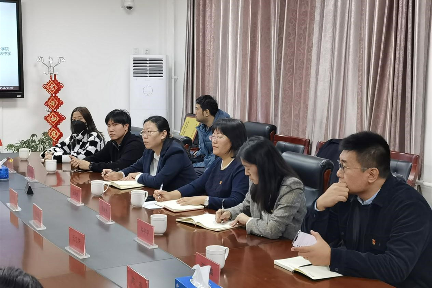 周艷杰簡要介紹了學(xué)校和學(xué)院發(fā)展歷程,重點闡述了學(xué)院的學(xué)科建設(shè)、教師隊伍、黨建工作情況,她強調(diào),中學(xué)與高校共建是協(xié)同育人的重要舉措,并表達(dá)了將共建活動推向深入的愿望。