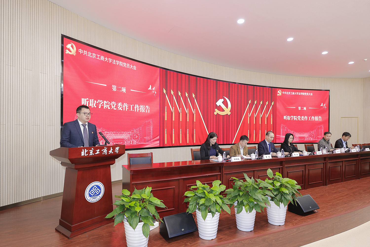 學(xué)院黨委書記胥陽(yáng)代表上一屆黨委作題為《堅(jiān)定信心,實(shí)干爭(zhēng)先,為建設(shè)市屬一流知名法學(xué)院勇毅前行》的工作報(bào)告,回顧了學(xué)院黨委過(guò)去五年的工作成績(jī)并總結(jié)經(jīng)驗(yàn),展望未來(lái)五年學(xué)院的發(fā)展目標(biāo),提出了主要任務(wù)和工作舉措,強(qiáng)調(diào)要探索建立黨建與業(yè)務(wù)同謀劃、同部署、同推進(jìn)、同落實(shí)的工作機(jī)制,努力建設(shè)具有“國(guó)際范兒”“創(chuàng)新味”“首都范兒”“接地氣”特色的市屬一流知名法學(xué)院。下一步,學(xué)院黨委將著重做好五方面的工作:一是牢牢掌握黨對(duì)教育工作的領(lǐng)導(dǎo)權(quán),二是用心用情培養(yǎng)高素質(zhì)法治人才,三是聚力打造不可替代的特色學(xué)科科研優(yōu)勢(shì),四是多措并舉建強(qiáng)高水平師資隊(duì)伍,五是集中力量推動(dòng)高質(zhì)量交流合作。報(bào)告號(hào)召全院師生進(jìn)一步振奮精神,以創(chuàng)新促發(fā)展,以開放謀發(fā)展,以特色強(qiáng)發(fā)展,以質(zhì)量保發(fā)展,在深化改革上善作善成,為學(xué)校高水平研究型大學(xué)建設(shè)作出新的更大貢獻(xiàn)!