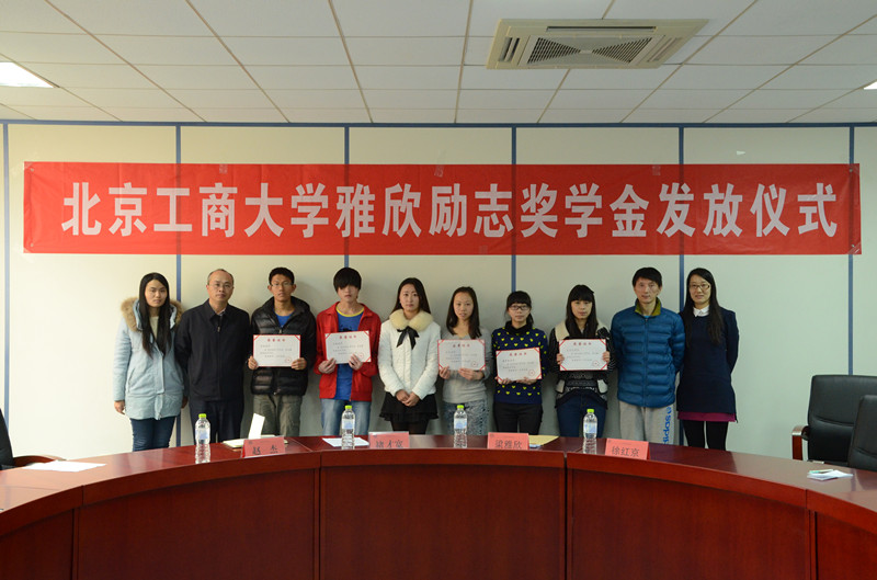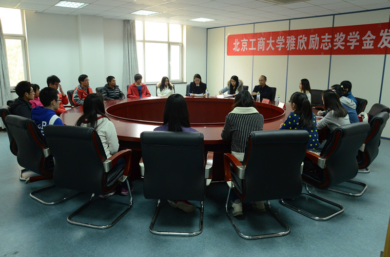 11月26日,雅欣勵志獎學金發放儀式在良鄉校區舉行。北京梁氏聚鑫文化交流發展有限公司總經理梁雅欣女士、學生處資助中心主任徐紅京、商學院黨總支副書記褚才寬出席儀式。儀式由學生處資助中心李娜主持。