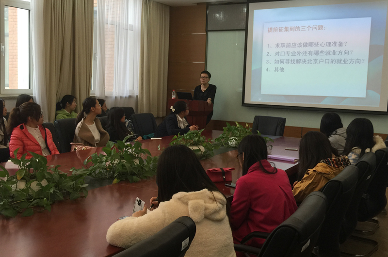 4月1日,就業指導中心教師李丹丹在阜成路校區作了題為“大學生就業心理準備與輔導”的講座。李老師通過“自己告訴自己”的游戲讓同學們模擬一生中所處的不同職業發展階段,讓同學們切身體會到即將面臨到的職場生活,讓大家迅速融入到了求職的環境中。她圍繞求職心理準備、專業就業方向、北京戶口的解決途徑等大家比較關心的問題進行了解答,使到場同學對相關內容有了具體而深入的了解。李老師幽默風趣的語言,深入淺出的講解不時迎來同學們的陣陣掌聲。
