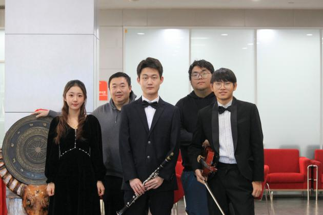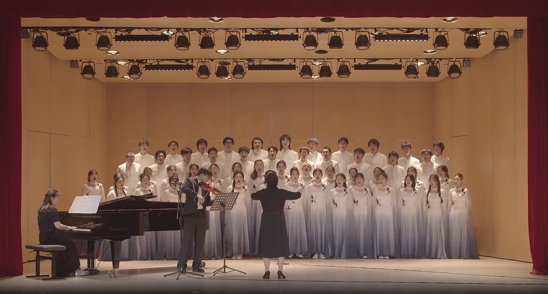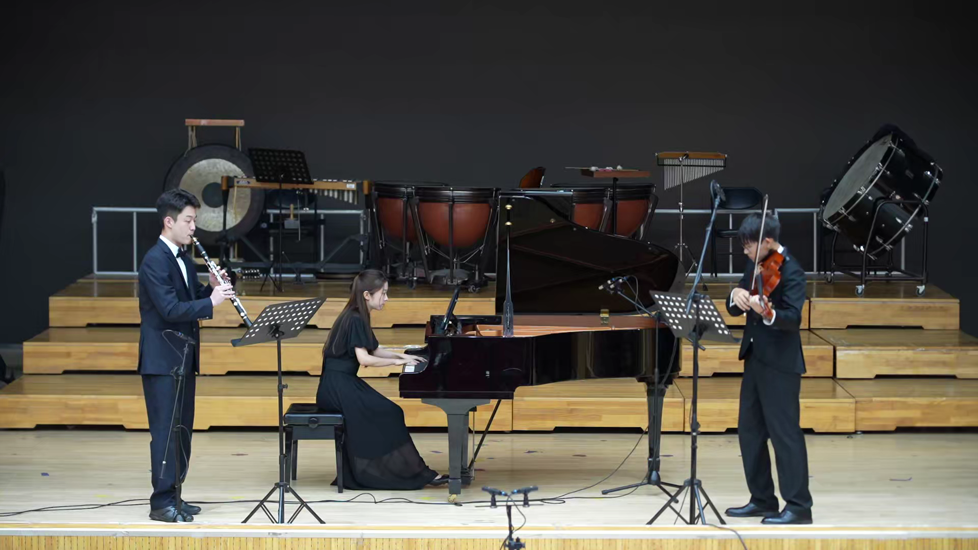 金獎(jiǎng)作品《莫扎特為中提琴、單簧管和鋼琴而作的三重奏,KV498》榮登北京大學(xué)生音樂節(jié)優(yōu)秀節(jié)目市級(jí)現(xiàn)場(chǎng)展演,在管樂團(tuán)劉兆老師的悉心指導(dǎo)下,張欣彤、李天澤、劉昀罡三位演奏者精心準(zhǔn)備、積極備賽。現(xiàn)場(chǎng)演奏中,由鋼琴、中提琴和單簧管默契配合,鋼琴的靈動(dòng)旋律營造出優(yōu)雅寧靜的氛圍,中提琴的醇厚音色融入其中,構(gòu)建出美妙動(dòng)人的音樂情境,而單簧管的悠揚(yáng)旋律則靈動(dòng)多變,為整首樂曲增添了無限魅力,生動(dòng)展現(xiàn)了我校大學(xué)生藝術(shù)團(tuán)的青春風(fēng)采,贏得了現(xiàn)場(chǎng)觀眾的熱烈掌聲。