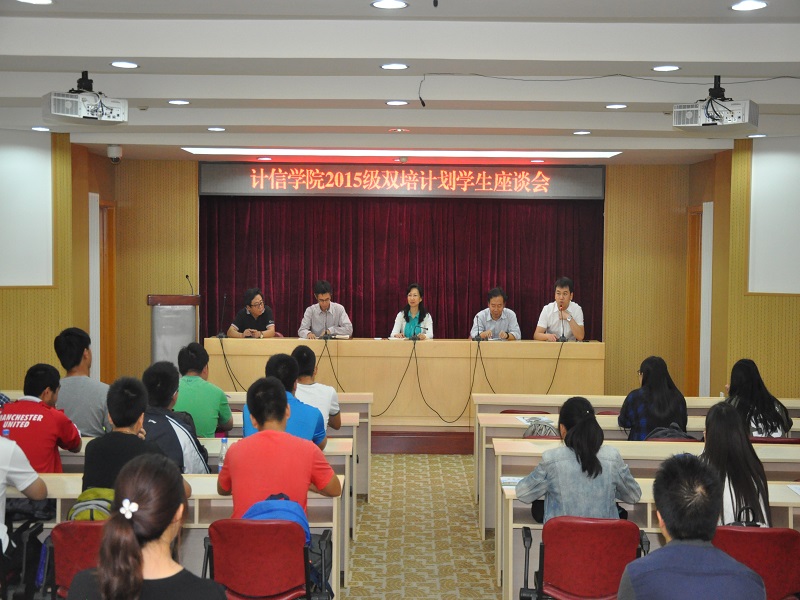 為做好首批“雙培計劃”學(xué)生培養(yǎng)工作,近日,計信學(xué)院召開2015級雙培計劃學(xué)生座談會。教務(wù)處副處長張偉,計信學(xué)院領(lǐng)導(dǎo)陳誼、蔡強、姜同強出席。學(xué)院黨總支副書記張凱偉主持座談會。2015級雙培計劃班全體學(xué)生、信息管理系劉蓓琳、熊海濤、趙璇、輔導(dǎo)員參加了座談會。