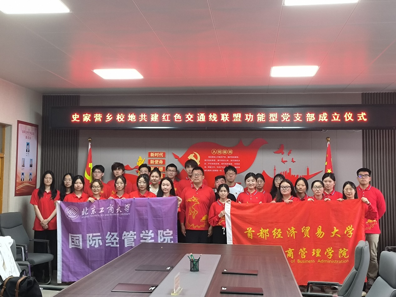 為學習貫徹習近平新時代中國特色社會主義思想主題教育,5月28日,國際經管學院師生赴革命老區史家營鄉開展“追尋紅色足跡,傳承紅色基因”校地共建紅色交通線聯盟暨功能型黨支部成立儀式。史家營鄉黨委組織部部長劉培虎、金雞臺村黨委副書記董阿楠、首都經濟貿易大學工商管理學院負責人付妍、國經管輔導員阿月爾以及學生黨員、入黨積極分子代表20余人參加活動。