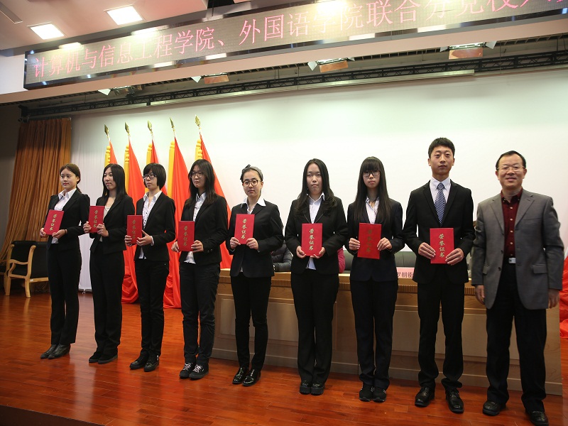 計算機與信息工程學院、外國語學院聯合分黨校入黨積極分子培訓班結業典于禮129日在良鄉校區舉行。計信學院黨委書記陳誼教授,外國語學院黨總支書記羅朝能副教授,計信學院黨委副書記張凱偉老師,外國語學院黨總支副書記任金晶老師,計信學院團總支書記曹璐婷老師以及全體培訓班學員參加。典禮由外國語學院團總支書記張悅主持。