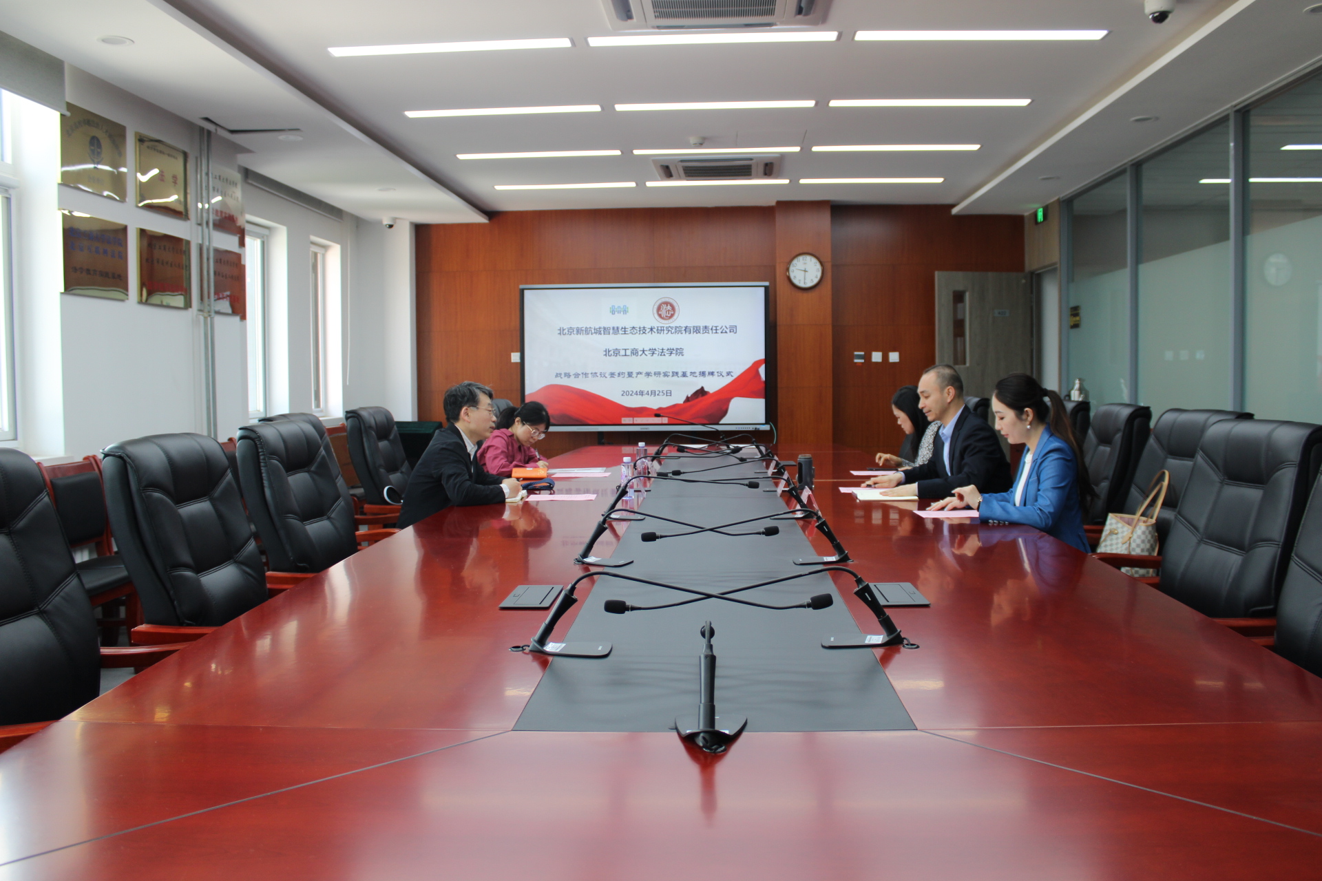 4月25日,法學院與北京新航城智慧生態技術研究院有限責任公司(以下簡稱“新航城研究院”)戰略合作協議簽約暨產學研實踐基地揭牌儀式在法學樓順利舉行。新航城研究院董事長張勇、研究中心主任韋芳玲,法學院院長陳敦、副院長劉冰、國際法學系教師韓璐參加儀式。