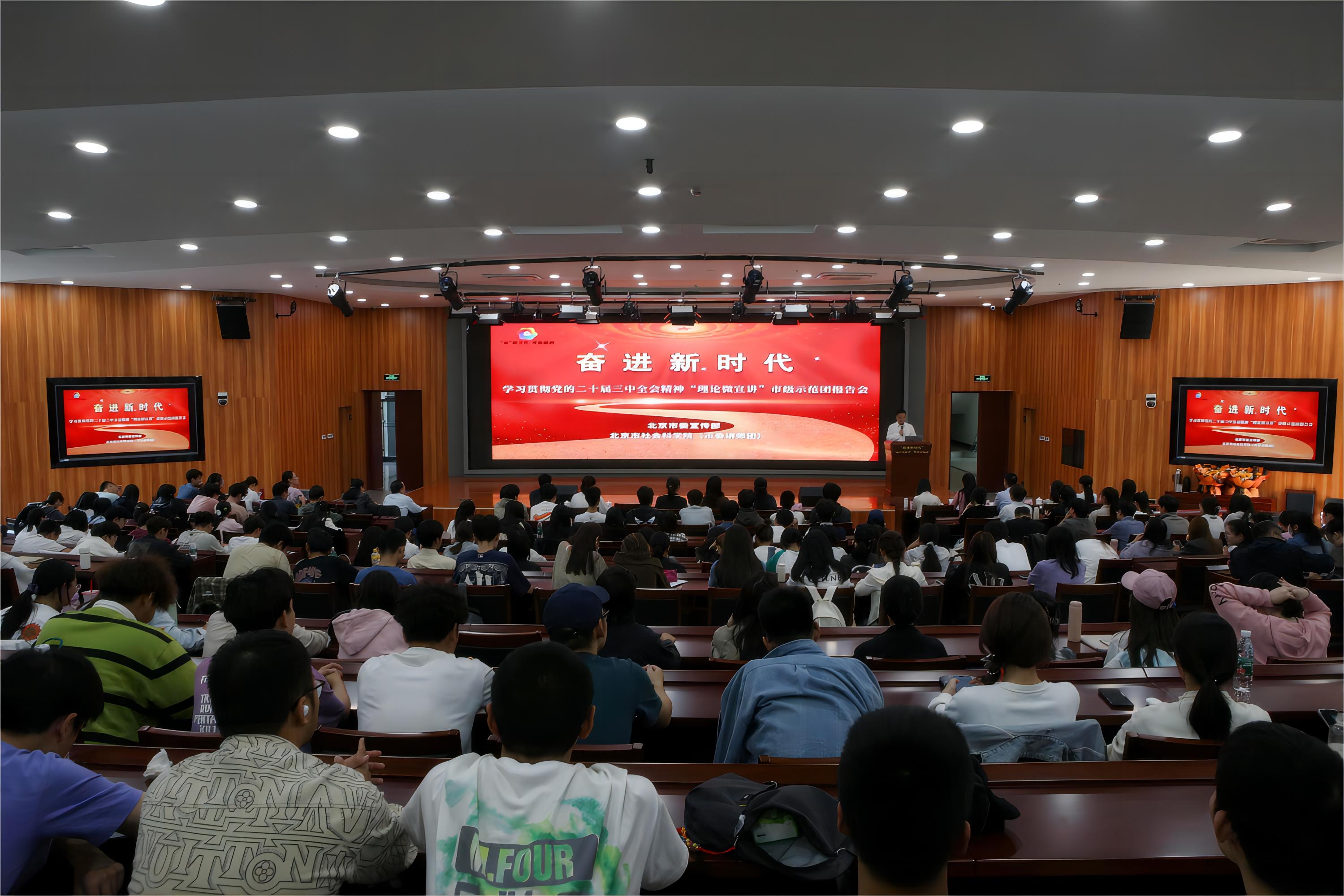 為深入推進黨的二十屆三中全會精神進校園、進青年群體,結合“‘京’彩文化 青春綻放”行動計劃的“信仰行”活動,北京市學習貫徹黨的二十屆三中全會精神“理論微宣講”市級示范團高校巡講活動于9月24日下午在我校良鄉校區舉行。來自經濟學院、數學與統計學院、馬克思主義學院、語言與傳播學院的260余名師生現場聆聽。