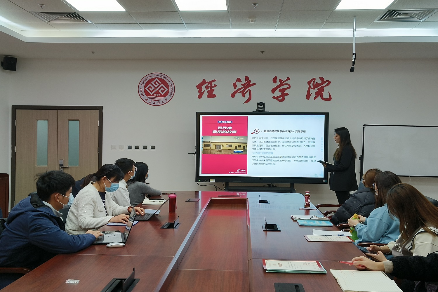 經濟學院國貿本科生黨支部書記焦錦馨就“青廉筑夢”鄉村振興實踐團在五間房村開展的主題實踐活動進行專題匯報。實踐團的同學們以五間房村為切入口,進行實地調研,探討問題所在,攻堅克難。同學們結合自身學科特點,與村民共同商議認為五間房村可以走“以梨富村,以情強村,鄉村振興”的發展道路。焦錦馨同志在匯報中分享了許多活動圖片,比如與小學生共同繪制心目中的五間房村,為村里老人拍一張照片等,近距離的與村民們接觸,感受鄉村的美麗風土人情。