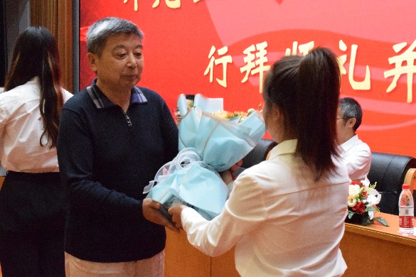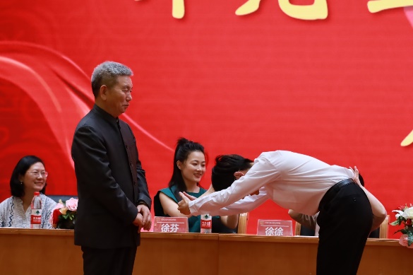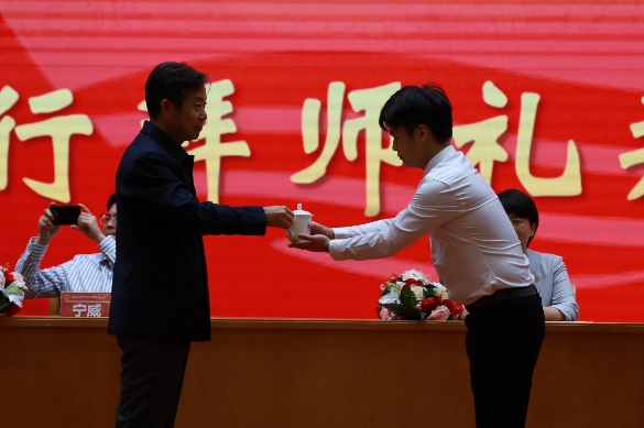 “禮”是中國傳統文化的核心,我國素有“禮儀之邦”之稱,講究尊師重道,注重拜師禮儀。在本次開學典禮的拜師儀式中,研究生代表依次向鯤鵬榮譽導師行敬茶禮、插手禮和獻花禮,表達最誠摯的敬意與感謝。師徒共進、薪火相傳,嚴肅而莊重的拜師儀式是經濟學院尊師重道的生動體現。