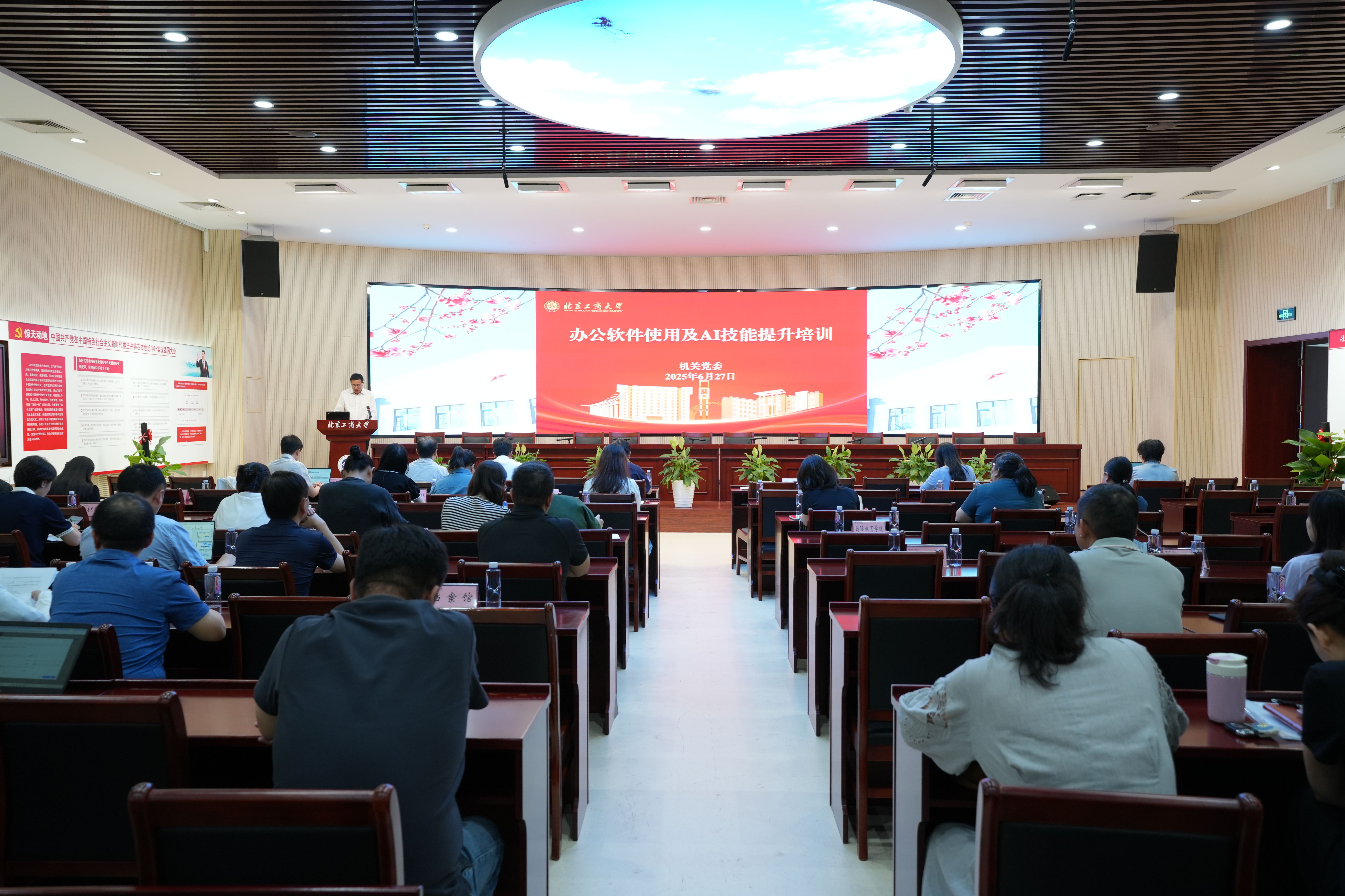為深入推進“強責任 優服務 提效能 促發展”作風建設專項行動,進一步提升管理人員的專業素養和履職能力,6月27日,機關黨委聯合教務處、網絡與信息化管理中心舉辦辦公軟件使用及AI技能提升培訓。會議由機關黨委書記韓軍主持,機關各部門教職工代表、各學院教學秘書等50余人參加培訓。