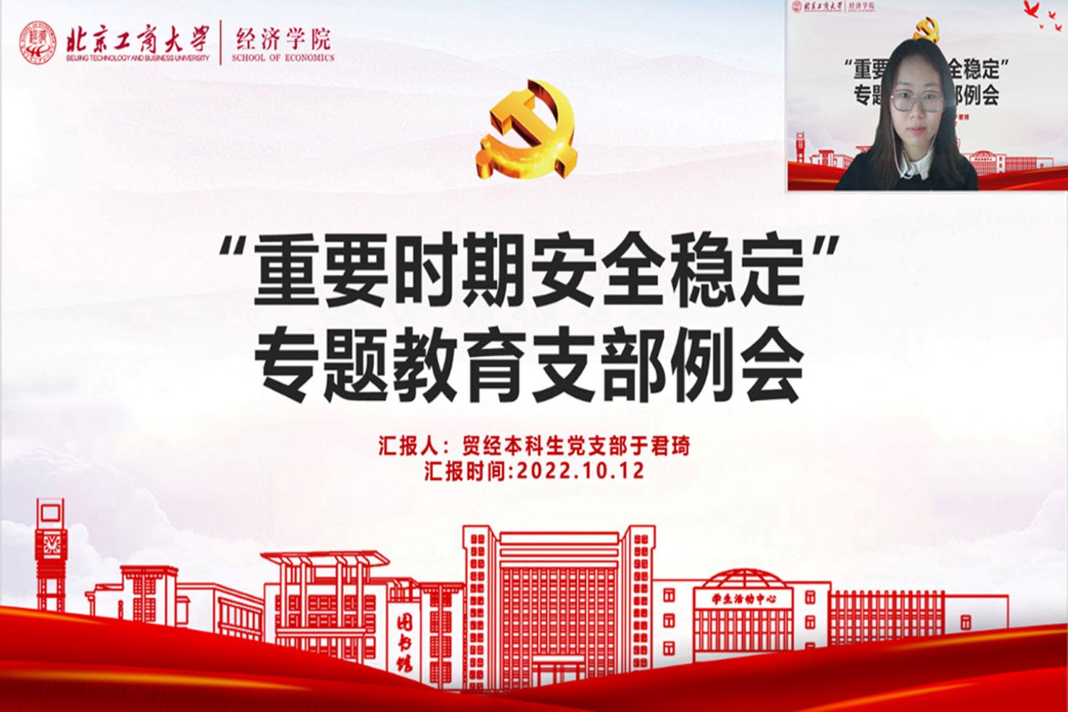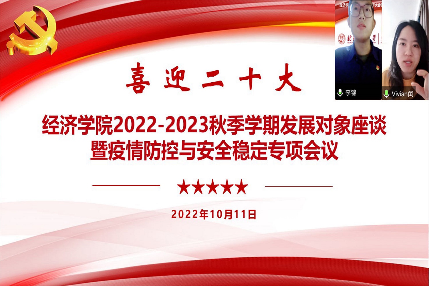為在疫情防控中進一步發揮全體學生黨員的示范帶頭作用,牢牢守住重要時期安全穩定基石,堅決貫徹習近平總書記關于疫情防控的重要指示精神,經濟學院各學生黨支部分別開展以“喜迎二十大”為主題的支部黨員大會,發揮黨團班一體化的制度優勢,在宿舍、班級、年級不同層面協助學院高效、扎實做好疫情防控工作,依托學院“網格化管理”模式,由學生黨員、發展對象擔任網格長與防疫督導員,形成層層遞進、責任到人的常態化核酸督促機制;讓黨員在維護校園安全穩定的一線做表率、勇擔當,以實際行動迎接黨的二十大勝利召開。