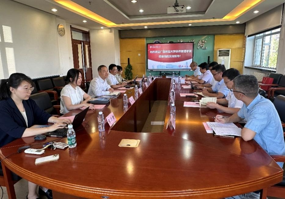 5月15日下午,廣西師范大學經濟管理學院領導班子一行六人來經濟學院調研交流。廣西師范大學經濟管理學院黨委書記陳國華、院長張海豐、副院長伍先福、副院長張學龍、院長助理李強誼、辦公室主任蔣敏,北京工商大學經濟學院黨委書記呂良、執行院長詹新宇、副院長馬雪嬌、副院長關晶、金融系副主任張迎新、辦公室黃新參加座談。