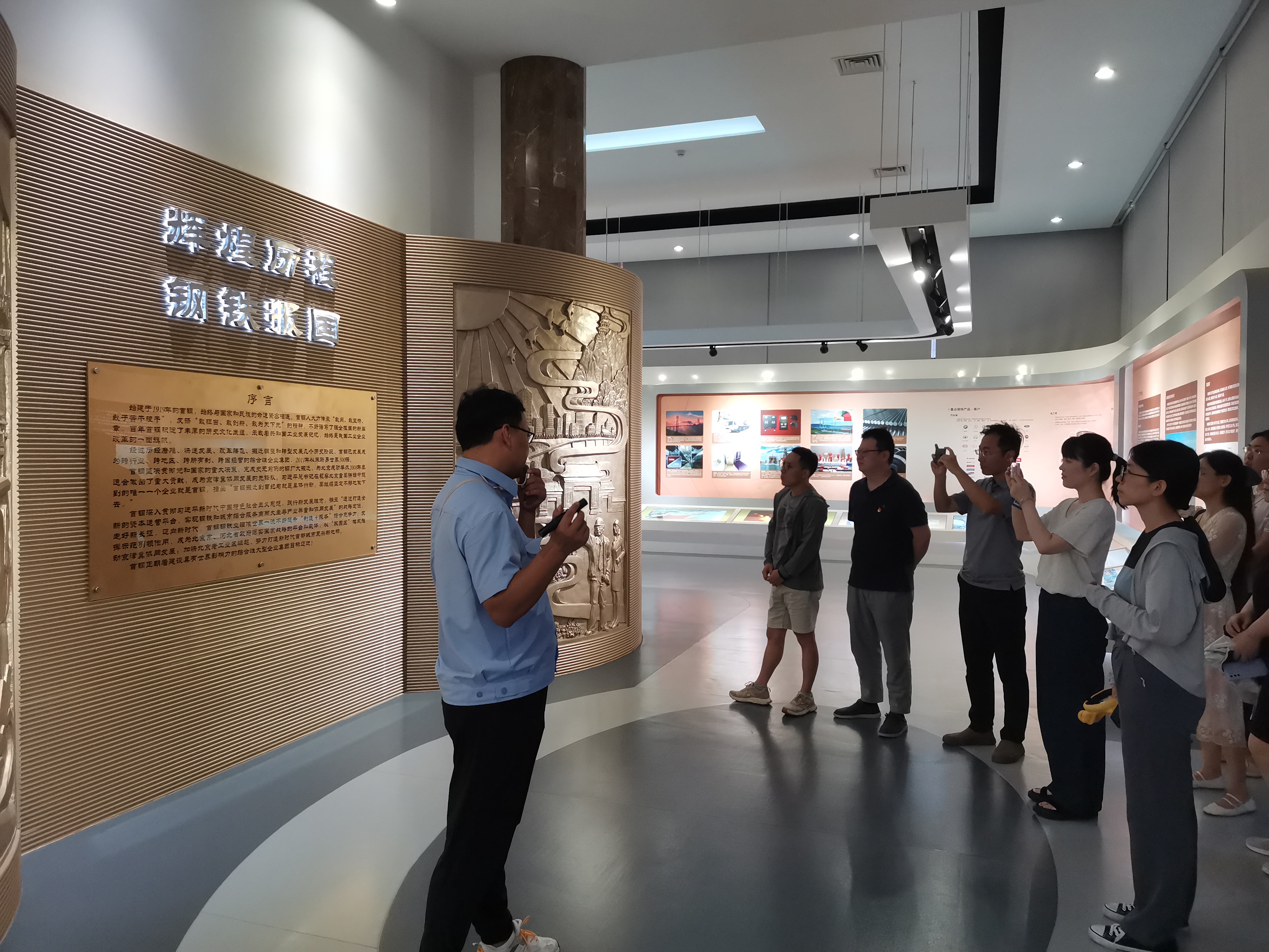黨員們在講解員的引領下來到陶樓,沉浸于《黨旗飄揚在首鋼》這部記錄片的震撼場景之中。從1919年那個充滿挑戰與希望的年代起步,首鋼在民族工業的搖籃中蹣跚學步;抗戰時期,面對敵人的封鎖與破壞,首鋼人憑借堅定的信念和不屈的意志,維系著鋼鐵生產的微弱火種,為抗戰勝利提供了寶貴的物資支持。新中國成立后,首鋼迎來了發展的春天,在黨的領導下,它迅速崛起為中國鋼鐵工業的璀璨明珠,為國家的工業化建設奠定了堅實的基礎。展覽中,毛主席的來信以及黨和國家領導人蒞臨首鋼視察的珍貴畫面,更是讓黨員們感受到了黨中央對首鋼乃至整個鋼鐵工業的高度重視與深切關懷。這些歷史瞬間,不僅是對首鋼人辛勤付出的肯定,更是激勵后人繼續前行的強大動力。