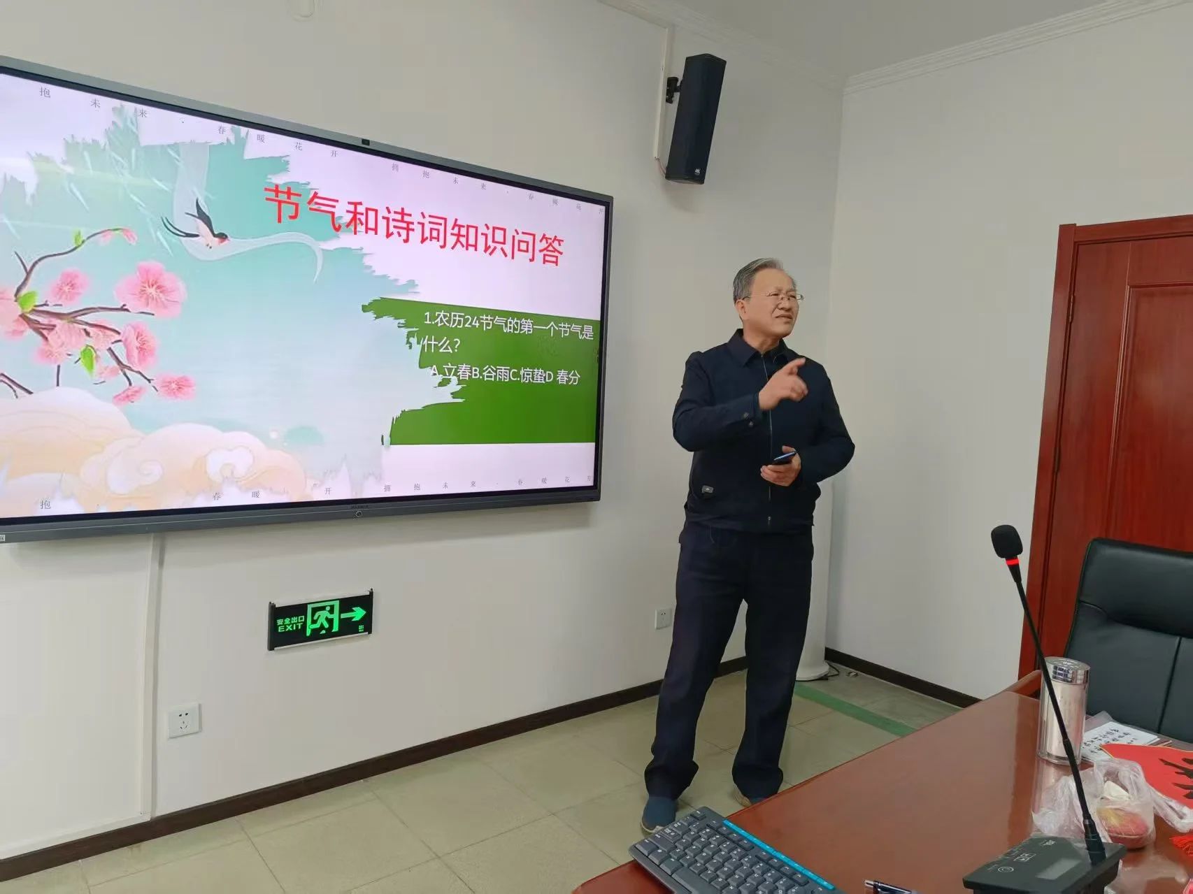 詩詞節(jié)氣小課堂里,學校原中文教研室退休教師夏京春在從杜甫的“好雨知時節(jié)”講到蘇軾的“春江水暖鴨先知”,以知識問答的形式解讀詩詞中的物候密碼,帶頭領(lǐng)誦《春江花月夜》《清明》等經(jīng)典詩文,共同感受詩詞描繪的春意,體會詩意中的離愁別緒和哲理人生。夏教授的講解引發(fā)陣陣掌聲,仿佛與千年前的文人隔空唱和。