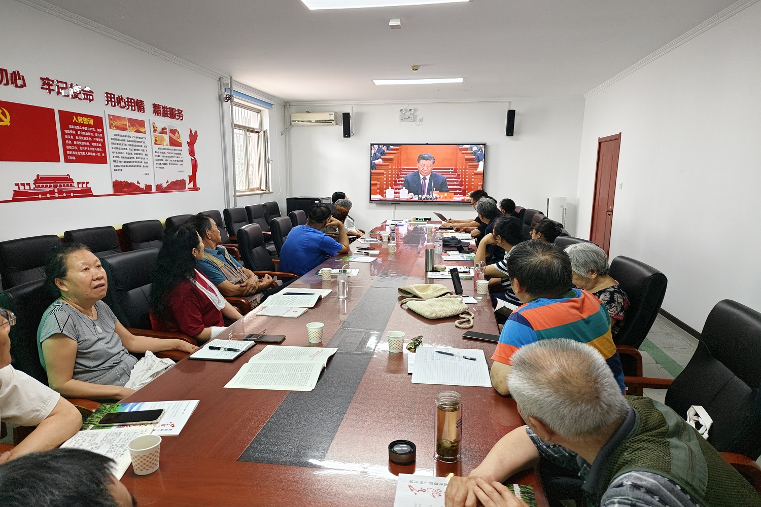 最后,與會人員集體觀看了由中央組織部制作的《黨章電視輔導教材》第一集《黨章總述》。該片根據黨的二十大黨章修正案最新精神修訂制作,契合開展黨紀學習教育的重點內容。在中國共產黨成立103周年前夕,各離退休黨支部將組織離退休黨員觀看,旨在讓大家深刻認識,黨章是黨的根本大法,是全黨必須遵循的總規矩,認真學習黨章、嚴格遵守黨章,是全體黨員應盡的義務和莊嚴責任。