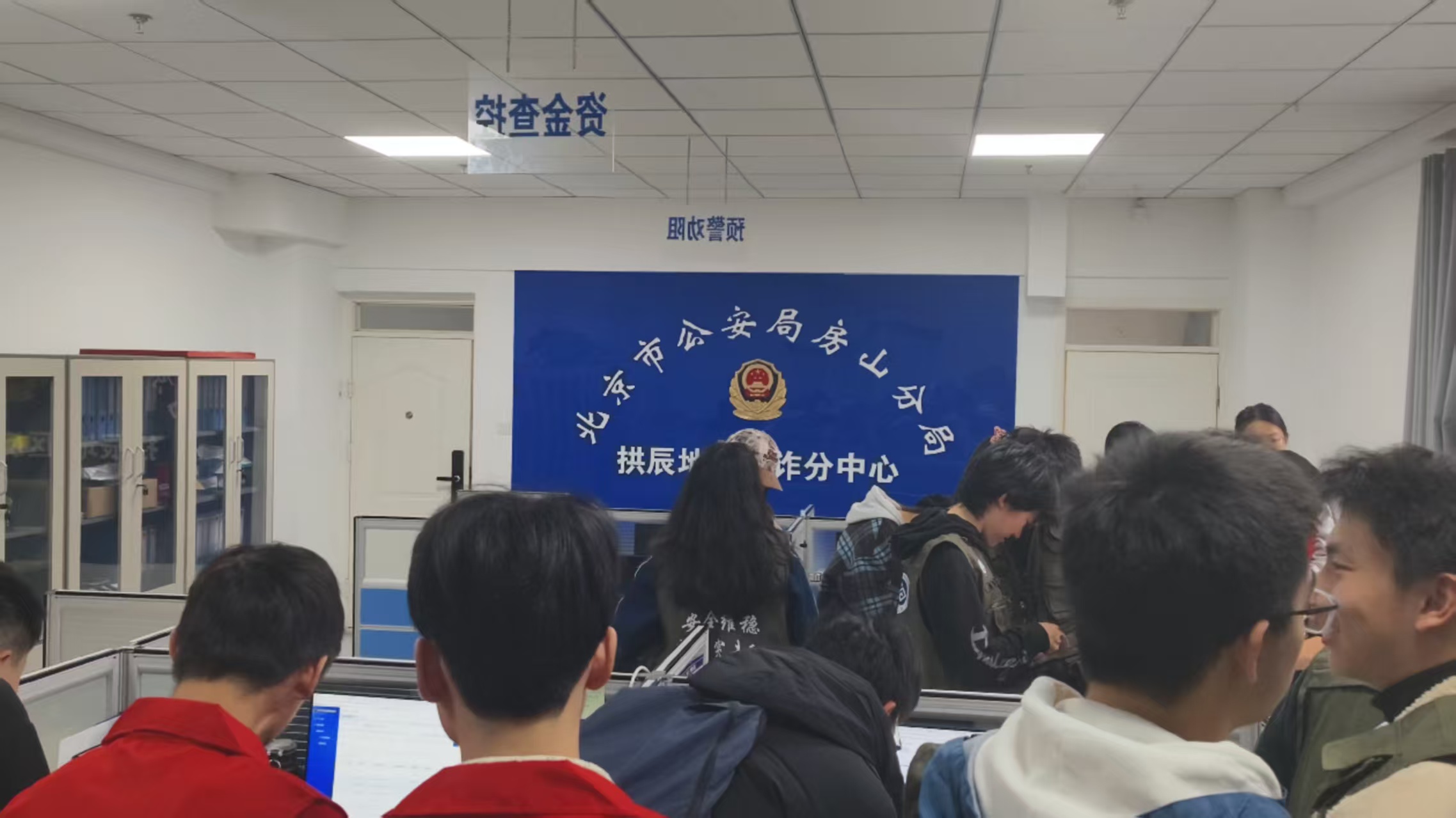 在房山分局拱辰地區反詐中心,同學們現場觀摩了反詐勸阻員的工作過程。當了解到勸阻員每天要撥打近2000個勸阻電話,而且經常會遭到被勸阻人的冷言冷語甚至辱罵時,大家無不感嘆默默奉獻的勸阻員們工作的艱辛。