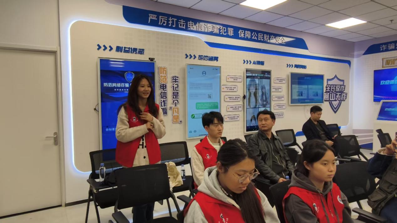 讓同學們感觸最深的是“反詐勸阻員”體驗環節。某某同學(需要真名)坐上勸阻席,戴上耳麥,瞬間化身“萌新勸阻員”。她(他)用顫抖的手撥出了第一通電話——“嘟……嘟……”,但沒人接,心情既緊張又失落,瞬間理解了反詐勸阻員每天重復幾百遍撥打電話的不易。“帶上耳麥,你就代表了國家的反詐人員!”一名勸阻員的這句話深深烙印在每個人心中。同學們認識到,反詐工作不僅是項技術活,更是良心活,是真正保障人民群眾財產安全的責任活。