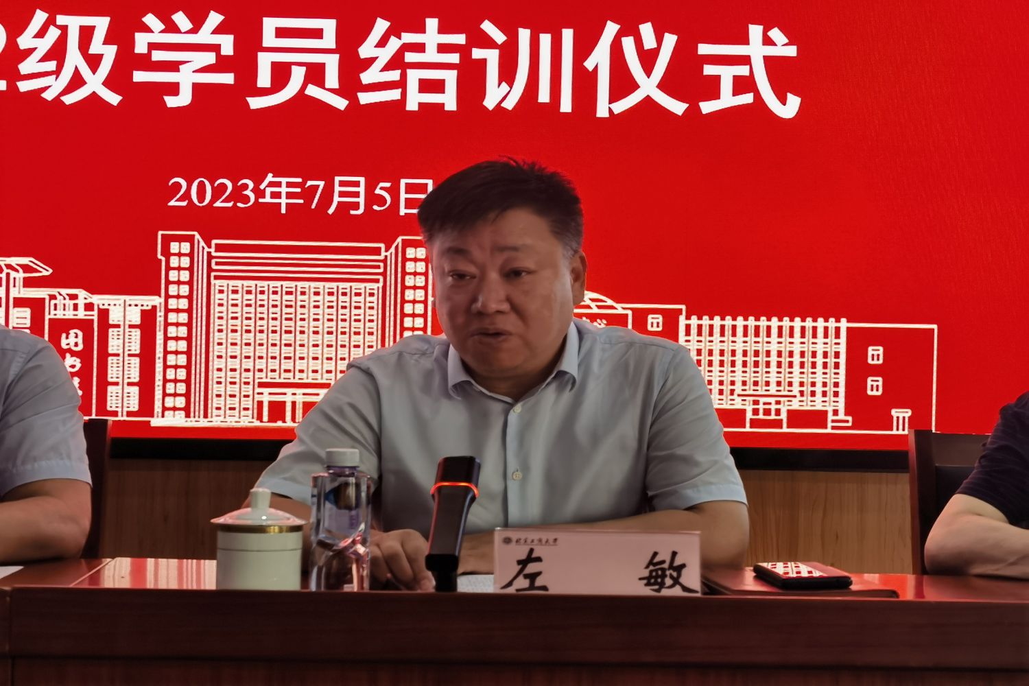 左敏在致辭中對2022級12名軍轉(zhuǎn)學員順利結(jié)訓表示熱烈祝賀,向悉心指導學員的老師表示衷心感謝。他指出,我校有優(yōu)秀的文化傳統(tǒng),積極推動面向區(qū)域和行業(yè)經(jīng)濟建設與社會發(fā)展,服務于北京“四個中心”城市戰(zhàn)略定位與世界一流和諧宜居之都建設,“求真、立德、勤奮、創(chuàng)新”的校訓精神流淌在北工商人的血液里,也希望學員們能將這些精神帶到今后的工作和生活中去。他對學員們提出了兩點希望:一是希望學員們勤學好思,讓學習成為習慣。轉(zhuǎn)變思想觀念、改善知識結(jié)構(gòu),提高適應地方環(huán)境、勝任工作的能力和水平,由軍隊人才成長為地方人才。二是希望學員們實干篤行,永懷報國之志。將軍人忠誠祖國、報效祖國的品格,以及北工商人實干篤志的精神帶到實際工作中去,勇于開拓、勤于耕耘、甘于奉獻,將一年以來的所學所獲融入本職崗位,再立新功。
