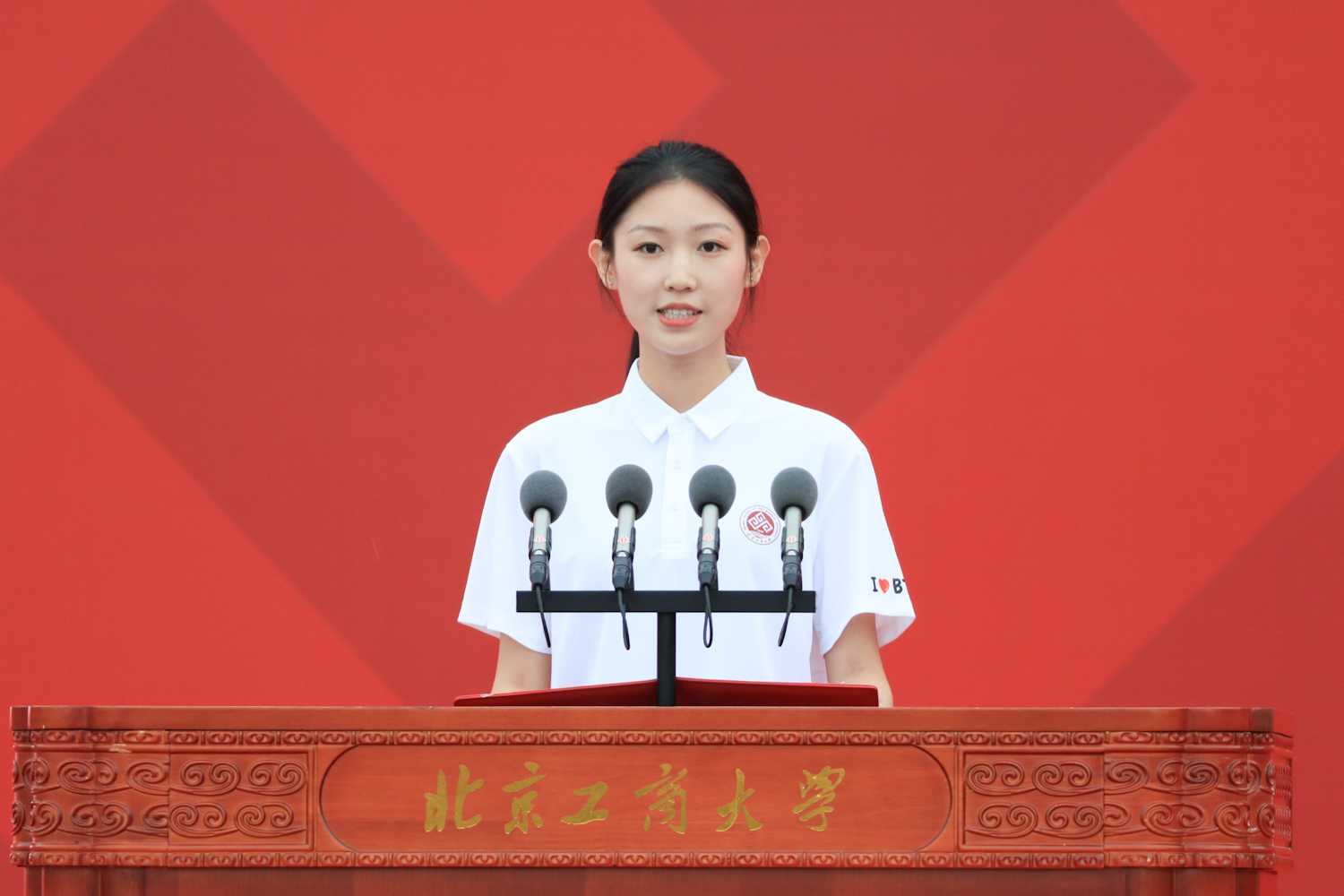商學院李佳昕代表北工商新生輔導員對2024級新同學表示熱烈歡迎。她談到,輔導員是同學們大學時光的同行者,也是最堅強的后盾,將為同學們的成長路上添磚加瓦,希望新生們獨立思考,求學更求真;果敢堅定,求實更求新;奮勇擔當,求辨更求德。她勉勵全體新生用孜孜以求的品質造就別樣風華,把青春的汗水揮灑在黨和人民的事業中,為學校高水平研究型大學建設貢獻青春力量。