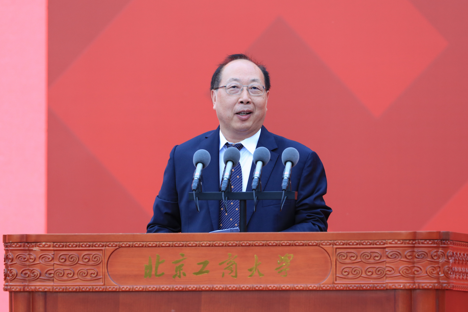 郭建華以校訓為引,對新生們提出希望:求真知。在數字化時代,要秉持求真知的精神,掌握科學的方法,用理性的眼光審視周圍的世界。要確保與時俱進地學習和研究,善于運用各種資源,提升學習技能和學習效率,也要培養獨立思考和創新的能力,堅持誠實守信的學術態度。立大德。在數字化時代,立德的要求更加迫切。要志存高遠,立學為民,治學報國,將個人的夢想與追求融入到黨和國家偉大事業中,為祖國的繁榮、人民的福祉不懈努力。要培養與時代精神相契合的思想品質,追求高尚的道德情操和行為規范,樹立正確的價值觀,在現實生活中誠實守信、尊重他人,在網絡空間中堅持道德的底線,用行動展示科技向善的力量。踐勤奮。在數字化時代,勤奮的內涵已經超越了傳統的刻苦,而更強調高效的時間管理,智能的資源利用,有效且持之以恒的努力。要把寶貴的時間投入在那些能夠帶來深遠影響、更有意義的事情上,確保努力方向正確且富有成效。勇創新。勇于突破傳統思維的束縛,探索未知、追求新知。要立足國家和民族的需求,推動科技創新,為社會進步、人類發展貢獻力量。要以無畏的勇氣,打破常規的枷鎖,讓青年的創意,成為改變世界的力量。希望同學們以校訓為指引,以夢想為動力,在數字化的浪潮中遨游,以奮斗者的姿態繪制新時代的雄偉畫卷,奏響新一代北工商人的最強音。