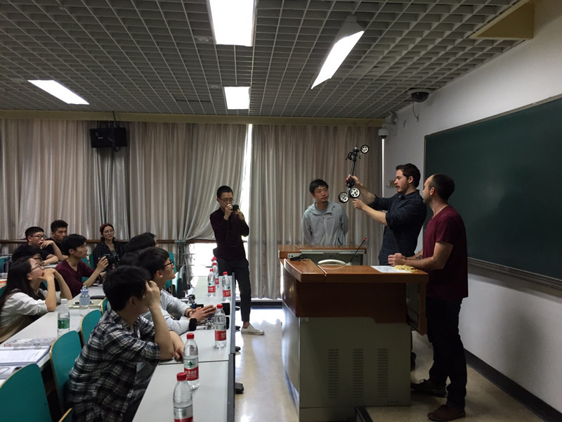 5月10日,榮獲2015彈力方程式國(guó)際設(shè)計(jì)錦標(biāo)賽美國(guó)總決賽(簡(jiǎn)稱FE)冠軍的美國(guó)藝術(shù)設(shè)計(jì)中心學(xué)院(Art Center College of Design 簡(jiǎn)稱ACCD)的leadfinger隊(duì)長(zhǎng)Zach Schlossberg和隊(duì)員Zach Buchman,以及ACCD中國(guó)辦事處負(fù)責(zé)人于瀾、于少澤一行來(lái)到我校良鄉(xiāng)校區(qū),與我校賽代表隊(duì)“夢(mèng)之隊(duì)”及產(chǎn)品設(shè)計(jì)專業(yè)學(xué)生切磋技藝,交流經(jīng)驗(yàn)。