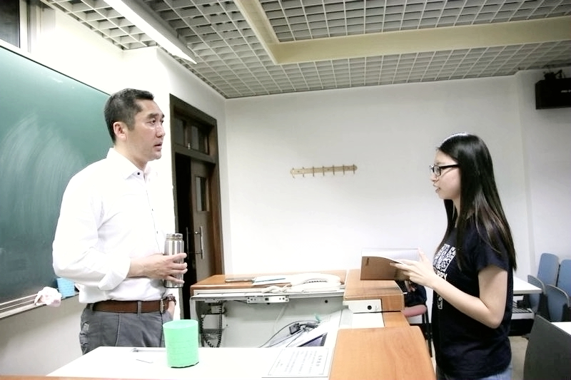才放下背包的張老師,立即就被兩名學(xué)生“包圍”討論問(wèn)題。法學(xué)151班的海洋同學(xué)告訴記者,老師的課余時(shí)間幾乎都是被“包圍”著的。他還告訴記者在上課最開(kāi)始的提問(wèn)環(huán)節(jié),張老師不僅提問(wèn)上節(jié)課他講過(guò)的知識(shí)點(diǎn),而且還對(duì)這節(jié)課即將要講的內(nèi)容提問(wèn),允許學(xué)生任意發(fā)表自己的看法。