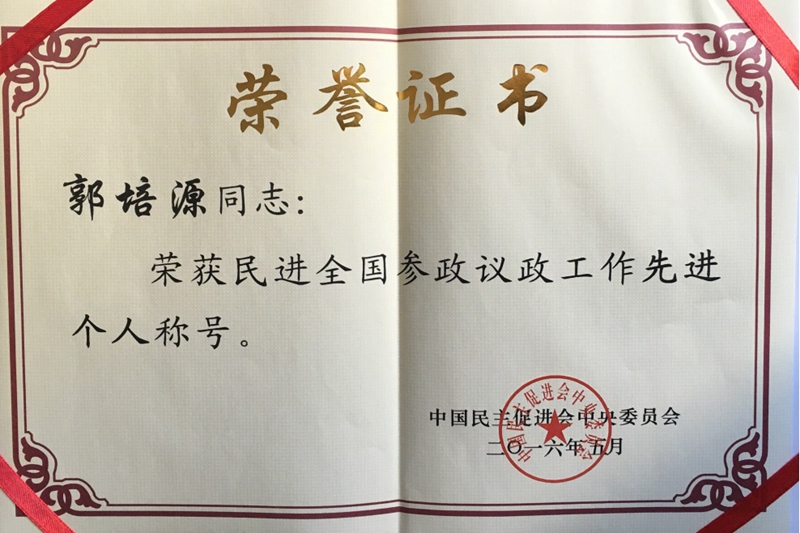 郭培源教授現任民進中央教育委員會副主任、民進北京市委員及監督委員會委員、民進北京市教育委員會副主任,民進北京工商大學支部副主任。多年來,在做好學校人才培養、科學研究本職工作的基礎上,郭培源積極服務社會,始終如一地關注國家、北京市、學校的教育問題,認真履行職責,積極參政議政,為民進中央、北京市、學校的參政議政做出了突出貢獻。