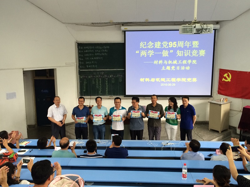 為慶祝建黨95周年,提高黨員的學(xué)習(xí)熱情,深入推進(jìn)“兩學(xué)一做”學(xué)習(xí)教育工作, 6月29日,材料與機(jī)械工程學(xué)院在阜成路校區(qū)舉行了紀(jì)念建黨95周年暨“兩學(xué)一做”知識(shí)競(jìng)賽活動(dòng)。來自學(xué)院4個(gè)教職工黨支部的60余名黨員參加了活動(dòng)。