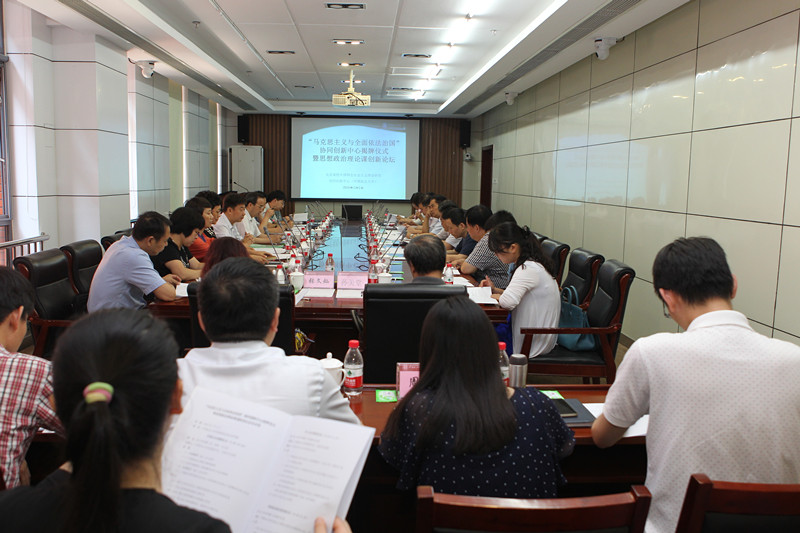 揭牌儀式上,中國政法大學校長黃進、北京市教工委宣教處處長王達品先后致辭,中國社科院馬研院主任余斌、河北大學黨委常委楊立海、南開大學馬克思主義學院院長紀亞光、我校黨委副書記張德玉、中國人民公安大學副校長汪勇先后進行大會發言。