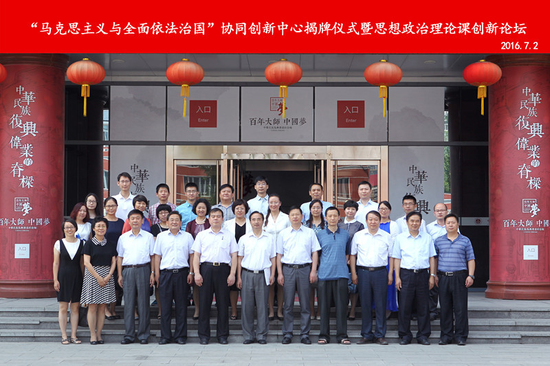 7月2日,由中國政法大學牽頭,我校與中國社會科學院馬克思主義研究院、南開大學、河北大學等單位共同組建的北京高校中國特色社會主義理論研究協同創新中心——“馬克思主義與全面依法治國”協同創新中心舉行揭牌儀式暨思想政治理論課創新論壇。我校黨委副書記張德玉出席活動,法學院/馬克思主義學院院長張秀芬、副院長王魯娜及思想政治理論課各教研室主任參加了揭牌儀式。