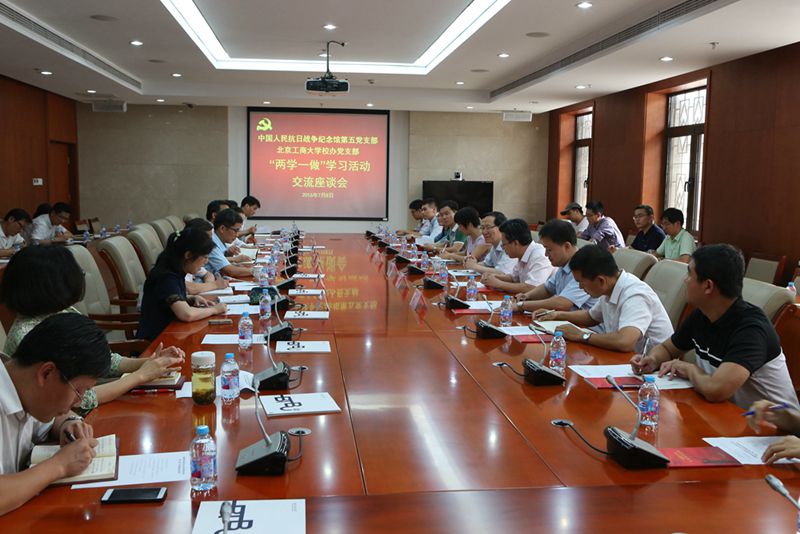 此次黨日活動以“銘記黨史,不忘初心,立足本職,繼續前進”為主題,重溫中國共產黨領導中國人民取得抗日戰爭勝利的光輝歷史,感受革命先輩對理想信念的執著追求和堅守,教育引導黨員進一步堅定理想信念、提高黨性覺悟。活動邀請中國人民抗日戰爭紀念館第五黨支部與我校校辦黨支部交流“兩學一做”學習教育情況,中國人民抗日戰爭紀念館館長李宗遠,副館長羅存康、董立新及第五黨支部18位黨員參加座談會。