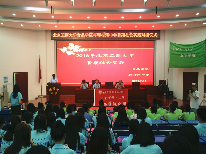 7月15日,食品學院實踐分團全體師生懷著飽滿的熱情來到房山區韓村河中學,開始了食品學院第12個年頭的暑期社會實踐活動。到達后,實踐團與韓村河中學舉行了2016年暑期社會實踐對接儀式。儀式由韓村河中學德育辦公室甄主任、食品學院團總支書記劉晶老師、王釗老師及兩校學生參加。