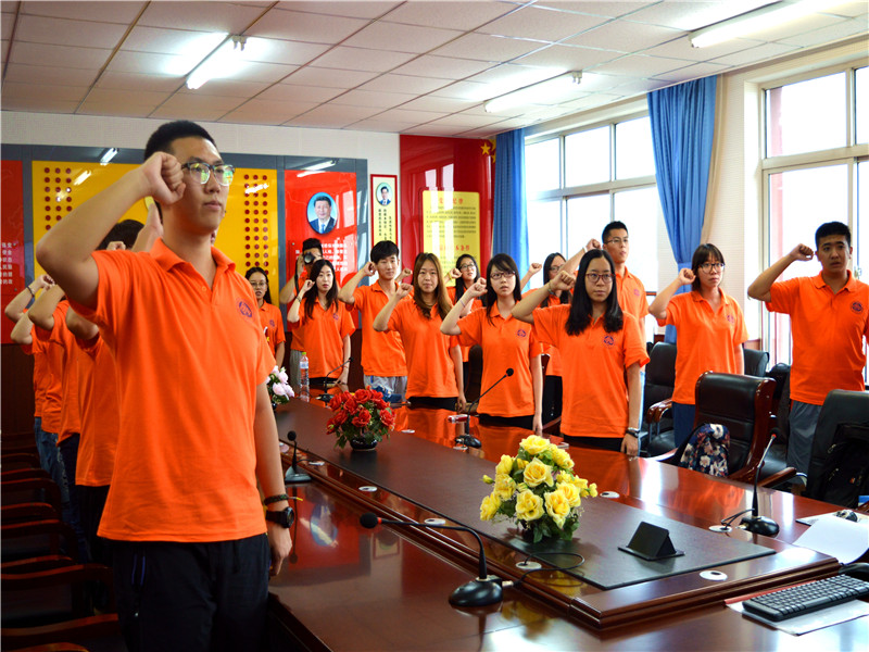 實踐團團員在團旗下莊嚴宣誓:“踐行志愿精神,服從組織,顧全大局,幫助他人,樂于奉獻,樹工商典范,展青春風采,攜手石中,共創法制中國夢。”
