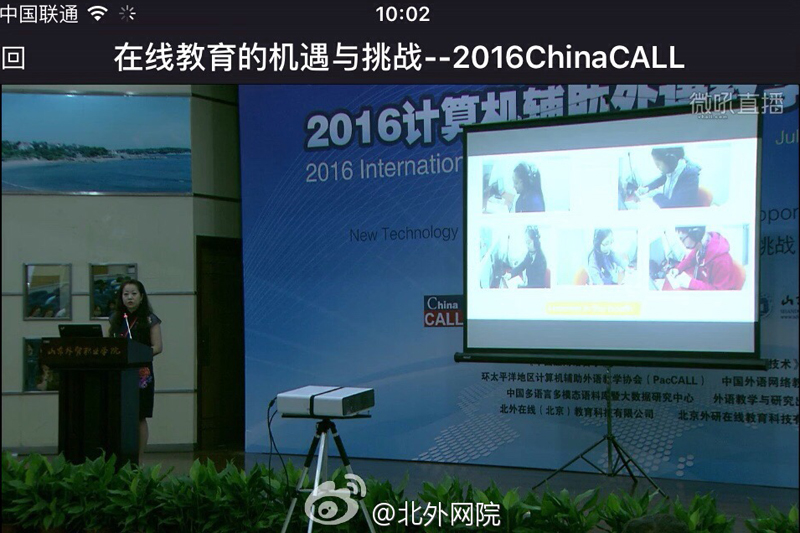 2016年計算機輔助外語教學國際研討會于7月21日—23日在山東青島隆重舉行。來自英國、澳大利亞、馬來西亞、日本等國的在線語言教學專家以及國內專家、學者和從事計算機輔助語言教學的教師近400人出席研討會,共同探討大數據、云服務、社交網絡等技術應用對傳統教育觀念、教育體制和人才培養模式帶來的機遇和挑戰。本次大會在形式上也采取了創新的模式,除面對面的會場發言和交流之外,對大會的主會場進行了全程直播,共計1.5萬網友同步在線觀看網絡直播并參與互動,產生了良好的社會效應。
