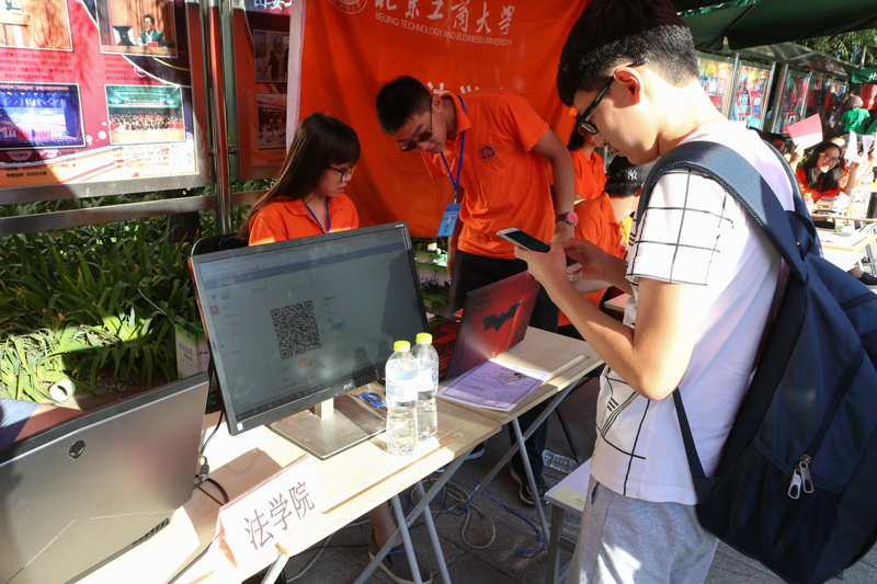 迎新當天,食品學院為新生和家長準備了學院自制的啤酒供大家品嘗。“我們早上五點多就從阜城路坐車,這些啤酒都是同學們在實驗室自釀的。”食品141班的崔麗麗對記者說道。法學院在暑假期間開始精心制作北工商手繪地圖,今天裝在袋子里贈送給了新生。每個學院都非常注重傳承本學院的優秀傳統。“計信是冠軍”的口號也傳達到了每一位計信的新生那里。“我們團學青合力制作了一張寫有計信是冠軍的卡片,目的就是讓新生了解我們院的優秀風采。”電子142班的于洋說道。商學院延續了傳統,為每位新生都準備了印有院訓和輔導員、班主任等聯系方式的班級名片,以便新生能夠及時聯系到負責人。商學院15級的志愿者劉小萌告訴記者:“去年我們就收到過班級名片,感覺非常便利,所以今年我們還是提前幾天就把班級名片印好發給新生。”考慮到大類招生,一開學需要進行專業分流,理學院安排老師在接待處給各位同學進行專業介紹,“大部分老師早上七點多就來了,還有的昨天晚上沒回家,直接住在學校了。”學院領導向記者說道。理學院還利用特色專業優勢,給新生們展示學院自主研發的化妝品。外國語學院則早在8月已經把迎新的雙語海報做好,團學青的學生志愿者也在8月26號就全部返校接受迎新培訓,只為更好的服務新生。值得一提的是,藝術與傳媒學院今天有三名新生過生日,在報到時,學院師生集體為這三名新生唱了生日快樂歌。其中一名新生說:“特別感動,沒想到在生日當天開學會有這么大的驚喜,學長學姐讓我提前感受到了學院的貼心與溫暖,很開心。”