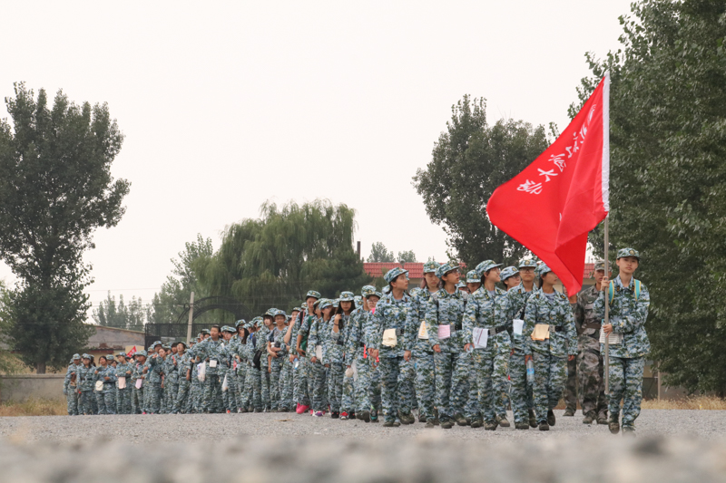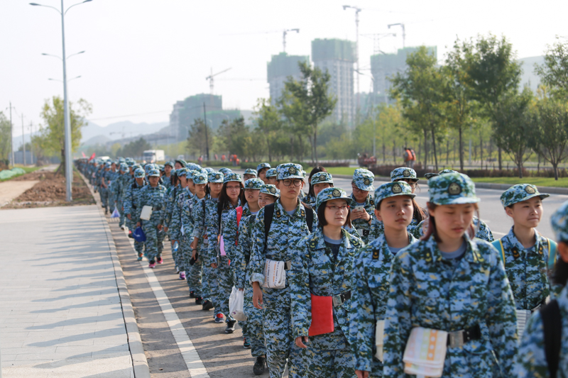 伴隨著整齊的口號聲,由一二三營組成的第一梯隊順次出發。招展的紅旗飄揚在初秋的天空中,各連同學士氣高昂,口號嘹亮。與以往軍訓相比較,本次是拉練里程達到10.5公里,超過之前歷次校內軍訓拉練距離。同時承訓部隊精心設計了口令傳遞、途中防空演練、通過染毒地帶等具體拉練科目,豐富了拉練內容。本次拉練除9名女生因身體原因未參加外,2600余名參訓學生均完成了任務。來自3營7連的女兵紛紛表示,拉練不是第一次參加,但大學軍訓的拉練意義不同,更深地體會到了“不輕言放棄,努力堅持”的意義。