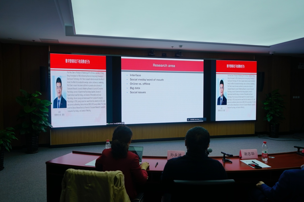謝志華教授致辭,拉開了大會的帷幕。香港中文大學沈浩教授以“數字營銷形態下的消費者行為”為題、北京師范大學戚聿東教授以 “后摩爾時代技術經濟范式演進與數字產業創新方向” 為題,中山大學謝康教授以 “案例研究、模型與計量分析的分立與結合 —— 以企業數 字化轉型和數字經濟研究為例”為題分別做了大會主會場的主題報告。