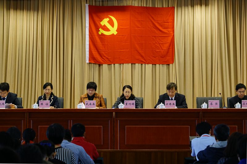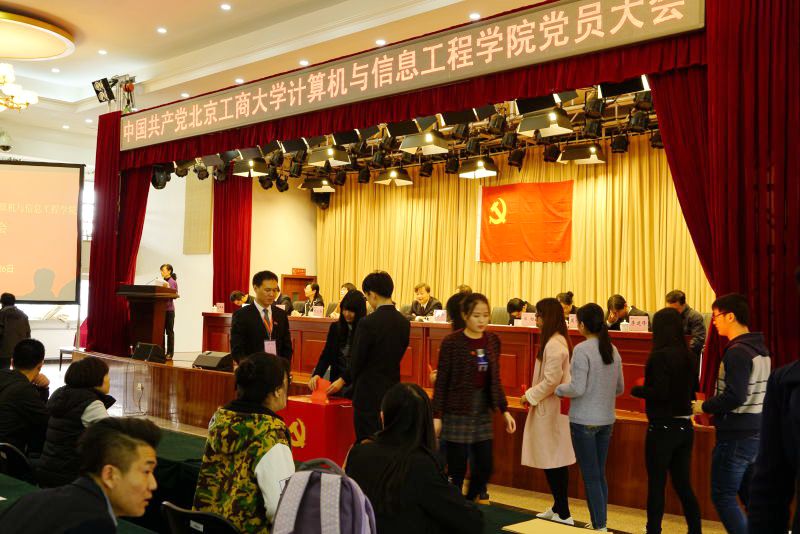 大會(huì)在莊嚴(yán)的國(guó)歌聲中拉開帷幕,學(xué)校黨委組織部武晶晶同志宣讀了《關(guān)于同意中共北京工商大學(xué)計(jì)算機(jī)與信息工程學(xué)院委員會(huì)召開黨員大會(huì)的批復(fù)》。
