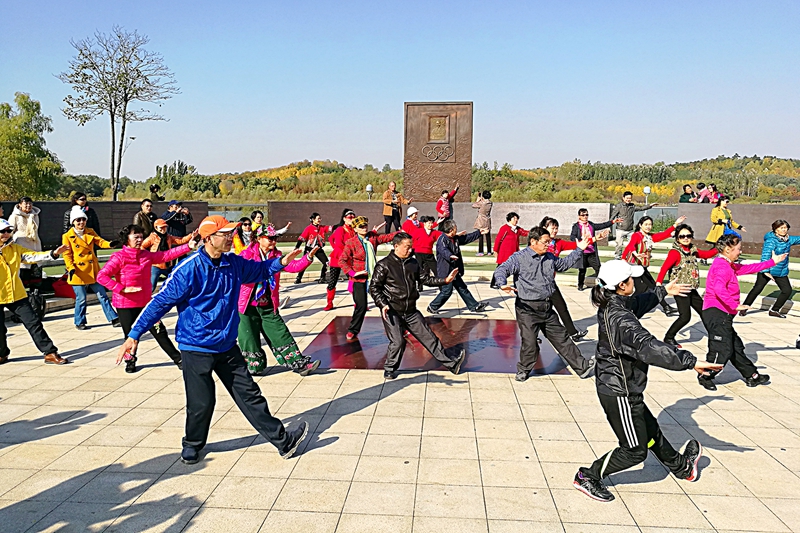中午12點,在奧森公園奧林匹克宣言廣場,北工商教工健走協會成立兩周年紀念會拉開了序幕。在“2016年,我們走過的地方”趣味搶答環節,健走協會負責人、藝傳學院夏京春老師展示了大家參加念壇公園、頤和園、香山公園、園博大道等近20個健走活動的照片,勾起了大家的美好回憶。在文藝節目表演環節中,有教職工自編的三句半《健走協會就是好》,有朗誦自創作品《夕陽》、舞蹈、獨唱、對唱、武術等精彩的表演。教職工們還進行了集體項目24式太極拳練習和打沙包游戲活動。會員代表唐迎春老師代表協會會員發表了自己的想法,她談到健走活動帶給她無窮的快樂,身體越來越好了,心情也越來越開朗了,希望與大家一起繼續健走,分享快樂。