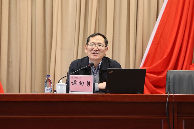 黨委書記譚向勇代表學校黨委對機關黨員大會的隆重召開表示祝賀,并以學習貫徹十八屆六中全會精神為主題,為機關黨員上了一堂黨課。他回顧了十八大以來歷次中央全會的主要內容,分析了十八屆三中、四中、五中、六中全會主題與構建“四個全面”戰(zhàn)略布局的關系,并對十八屆六中全會精神進行了重點解讀,對推進全面從嚴治黨特別是學習貫徹《新形勢下黨內政治生活若干準則》和《中國共產黨黨內監(jiān)督條例》提出明確要求。