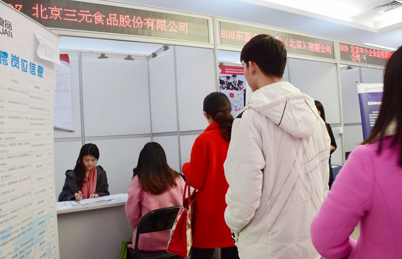 校園雙選會是學(xué)校就業(yè)招聘工作的傳統(tǒng)項目,同時也是畢業(yè)生求職擇業(yè)的重要平臺,對推進畢業(yè)生就業(yè)工作發(fā)揮著主渠道作用。11月2日,學(xué)校“2016年冬季首場校園雙選會”在北京市教委大學(xué)生就業(yè)之家順利舉行。本場雙選會共有來自北京地區(qū)的83家用人單位前來招聘,參會單位涉及工、商、法、外、藝等多個行業(yè)領(lǐng)域,其中既有中鐵建、中國人壽、長城計算機、外交服務(wù)局、通信局、北京地鐵、熱力集團等30多家國有企事業(yè)單位,也有瑞薩集成電路、丘比食品、三元食品、綾致時裝、歐尚、家樂福等20多家港澳臺外商企業(yè),同時還有居然之家、味食源食品、歐華益鴻咨詢等多家校友單位到場參會。據(jù)統(tǒng)計本場參會單位提供職位403個、涵蓋崗位2681個,極大滿足了我校畢業(yè)生求職應(yīng)聘的崗位供給。學(xué)校1500余名應(yīng)屆畢業(yè)生到場參會,現(xiàn)場氣氛熱烈,效果良好。雙選會當日,學(xué)校相關(guān)部門負責(zé)人、各學(xué)院就業(yè)工作負責(zé)人及全體就業(yè)輔導(dǎo)員都來到招聘會現(xiàn)場,與用人單位接洽溝通,指導(dǎo)推薦學(xué)生就業(yè)。在學(xué)校各相關(guān)部門的大力配合下,本次雙選會圓滿完成,取得了很好的效果。