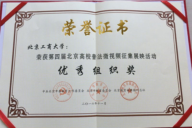 11月30日,由北京市委教育工作委員會和北京市教育委員會主辦的“12.4”國家憲法日主題教育現場展示會舉行。由藝術與傳媒學院選送的公益微視頻——《現實沒有回放,請遵守交通規則》獲評第四屆北京高校普法微視頻征集展映公益視頻作品二等獎,法學院及馬克思主義學院學生自編自導、自拍自演的普法微視頻——《誰動了我的照片》榮獲微電影作品三等獎,我校榮獲優秀組織獎。