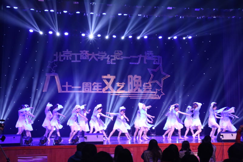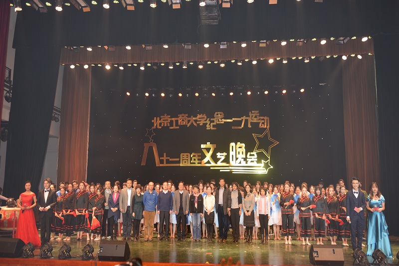 為紀(jì)念“一二·九”運(yùn)動(dòng)81周年,傳承先輩精神,展現(xiàn)工商風(fēng)采,12月7日晚,學(xué)校紀(jì)念“一二·九”運(yùn)動(dòng)81周年文藝晚會(huì)在良鄉(xiāng)校區(qū)文體館舉行。學(xué)校黨委副書(shū)記張德玉出席晚會(huì),學(xué)生處處長(zhǎng)呂素香、體育與藝術(shù)教學(xué)部主任呂良、校團(tuán)委書(shū)記王海偉、黨委宣傳部副部長(zhǎng)褚才寬、保衛(wèi)處副處長(zhǎng)楊東杰、各學(xué)院黨委(黨總支)副書(shū)記、團(tuán)總支書(shū)記及1500余名學(xué)生觀看了演出。