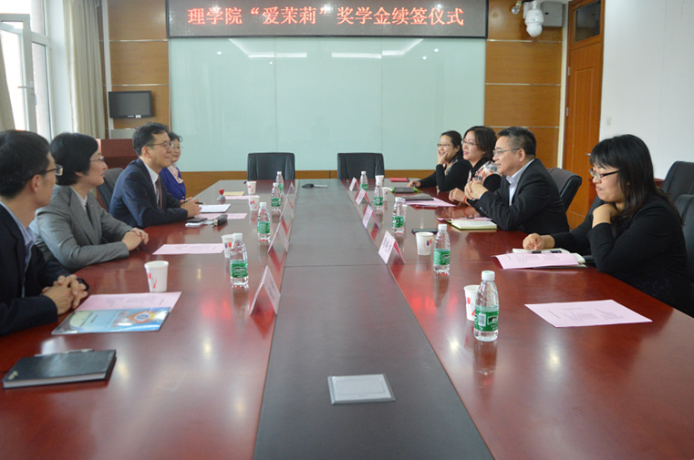 張耘副校長對獲得獎學(xué)金的同學(xué)們表示祝賀,對學(xué)校今后的重點發(fā)展目標(biāo)及良鄉(xiāng)二期理學(xué)院大樓的建設(shè)和規(guī)劃做了介紹,為理學(xué)院和愛茉莉公司的進(jìn)一步深入合作寄予了殷切期望,并祝愿理學(xué)院在“雙一流”建設(shè)中取得更大的成績。
